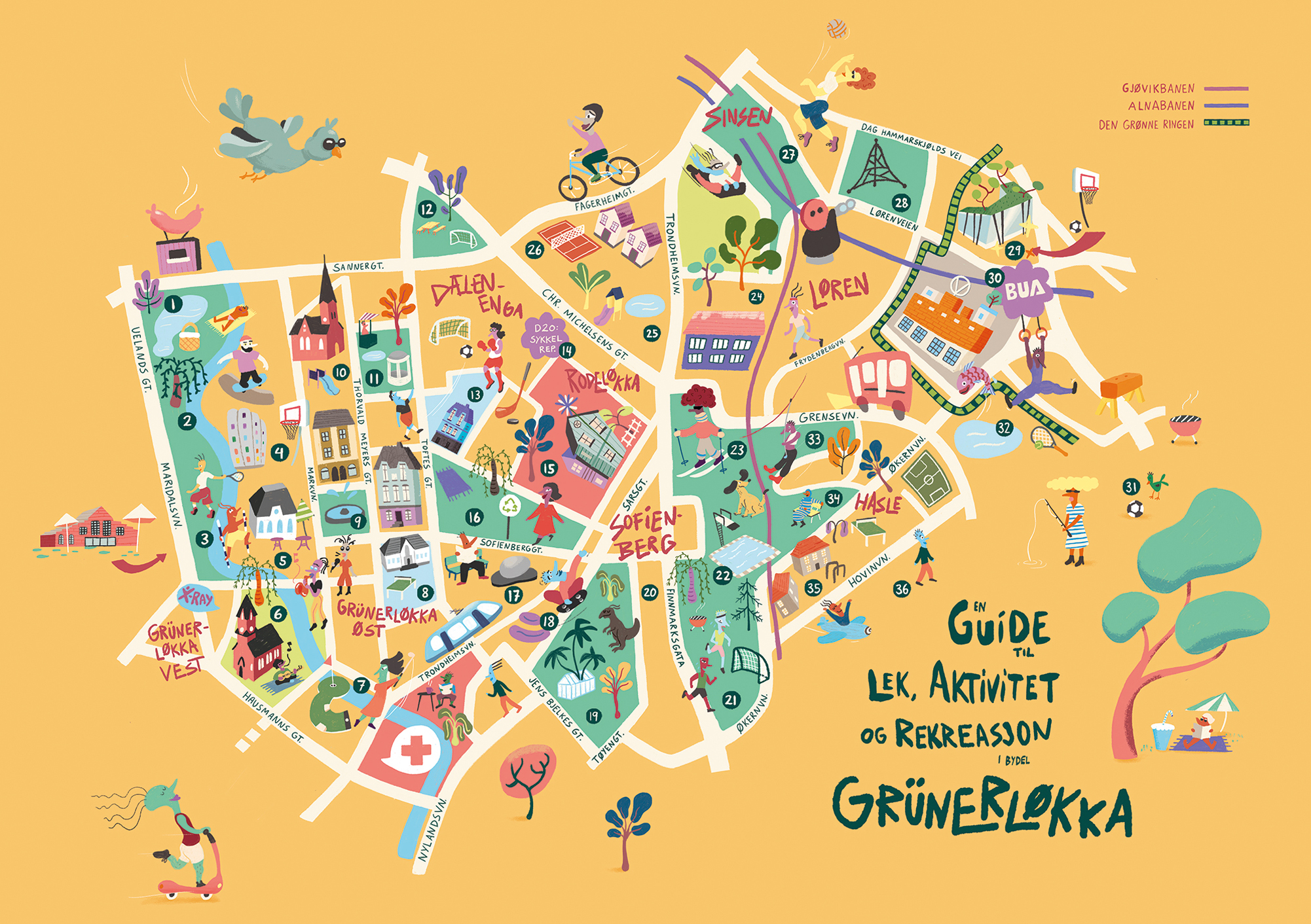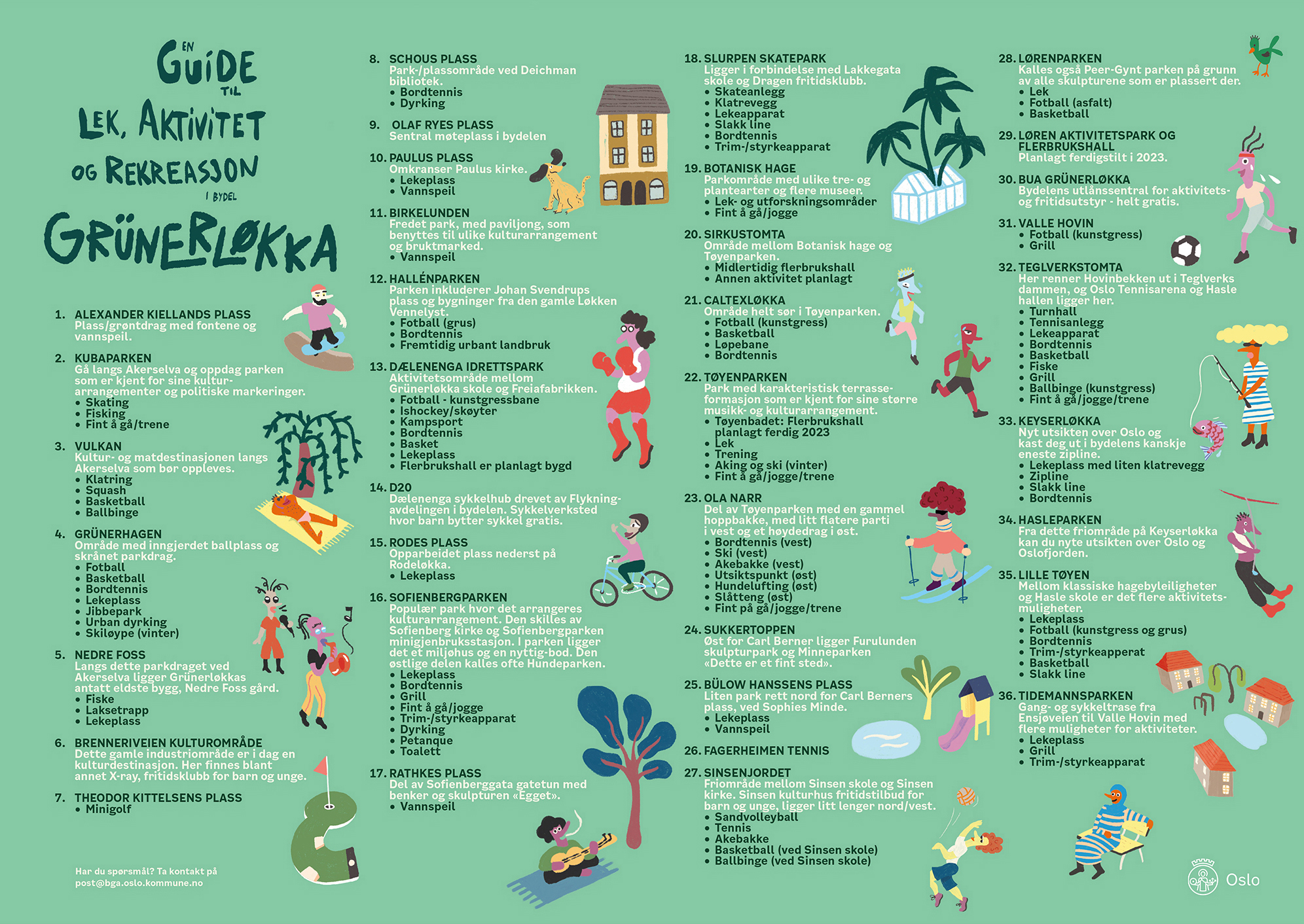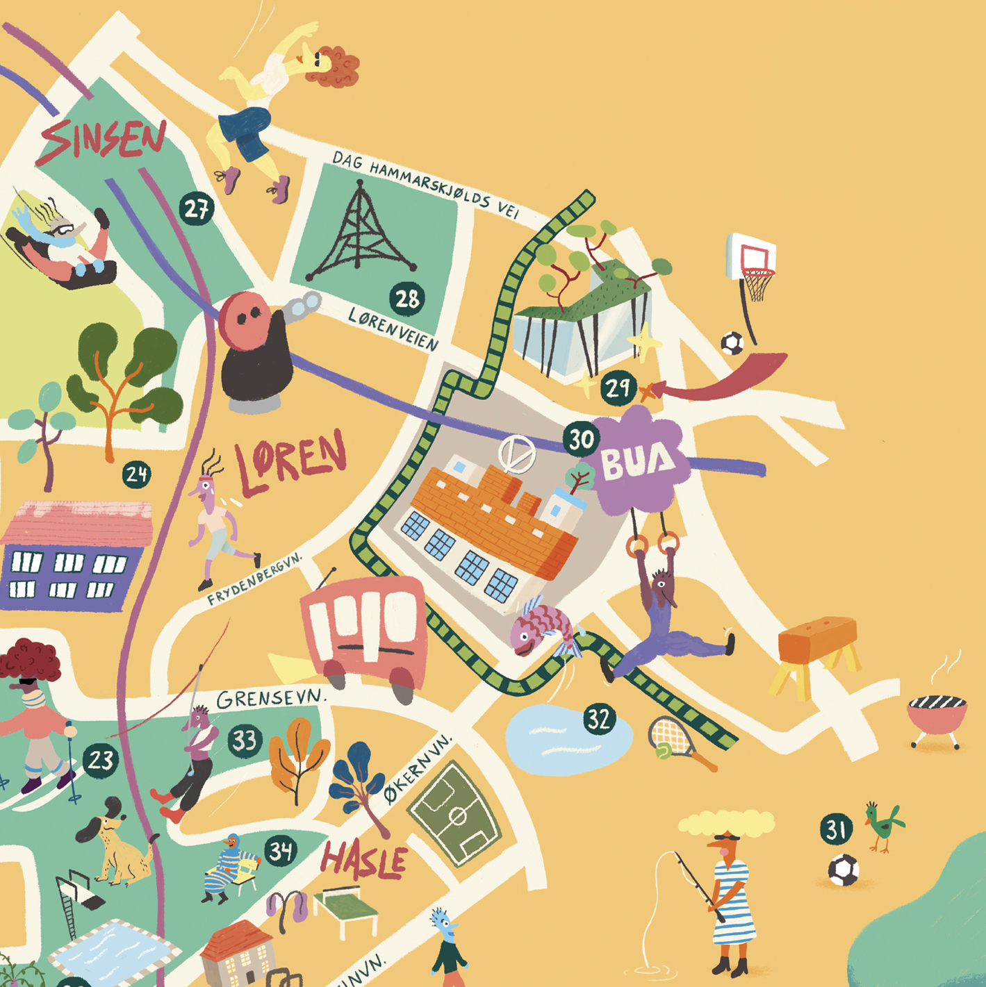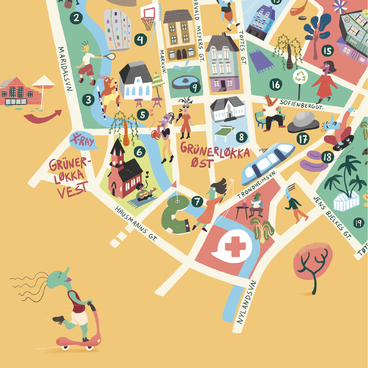 Kartet viser ulike tilbud og aktiviteter innbyggere i bydelen kan benytte seg av.