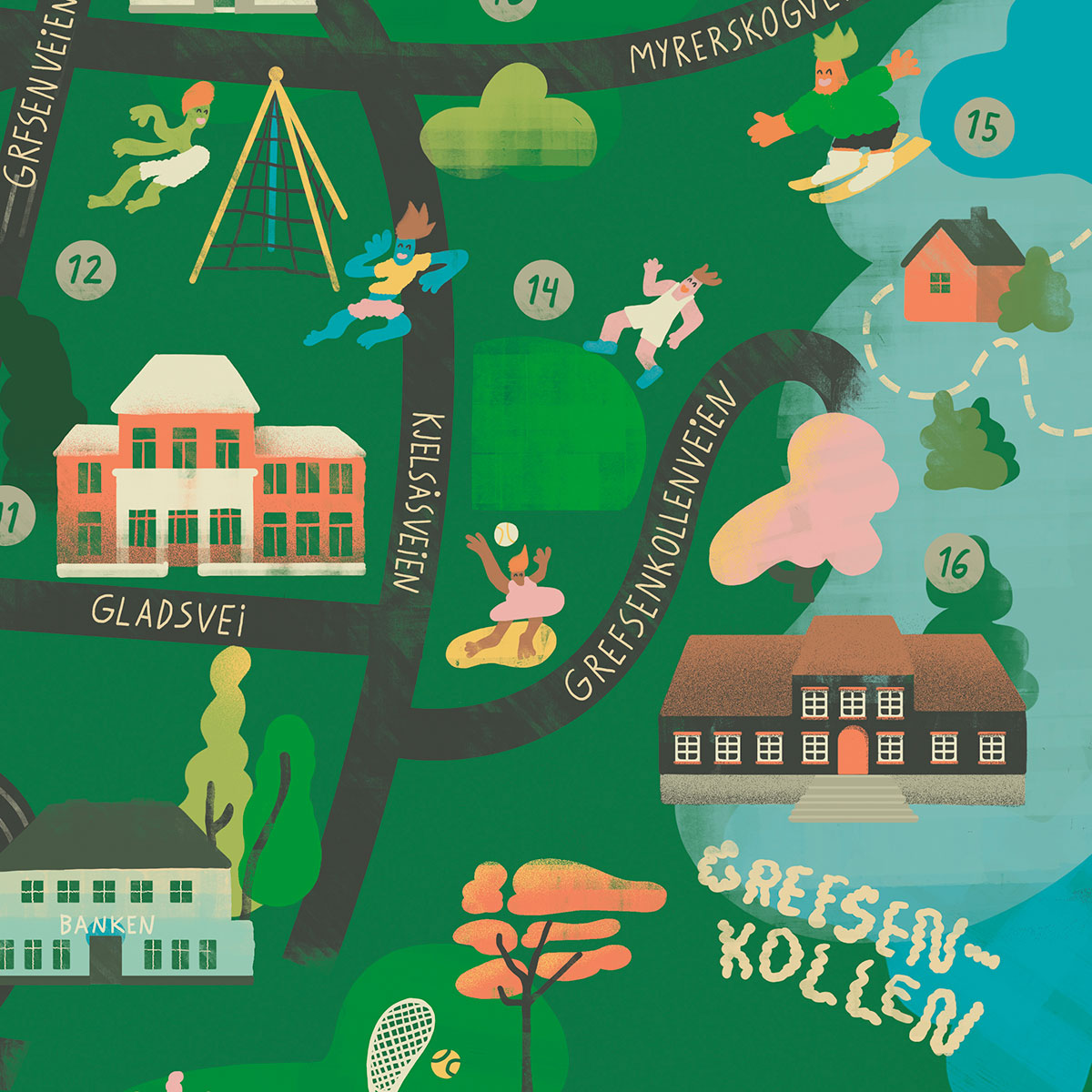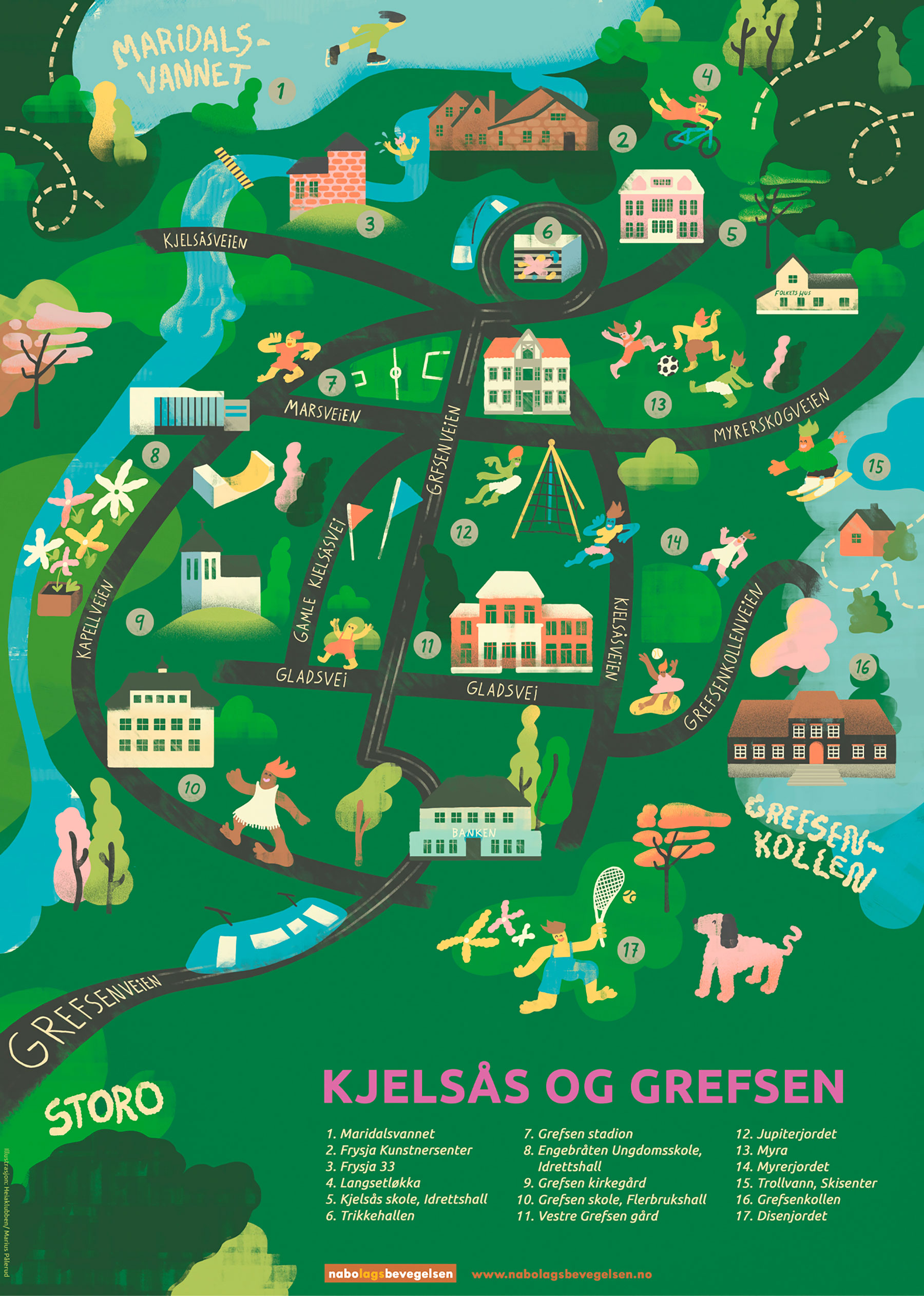 Kartet viser tilbud og aktiviteter med formål om å aktivisere folk, parker og plasser på Grefsen og Kjelsås