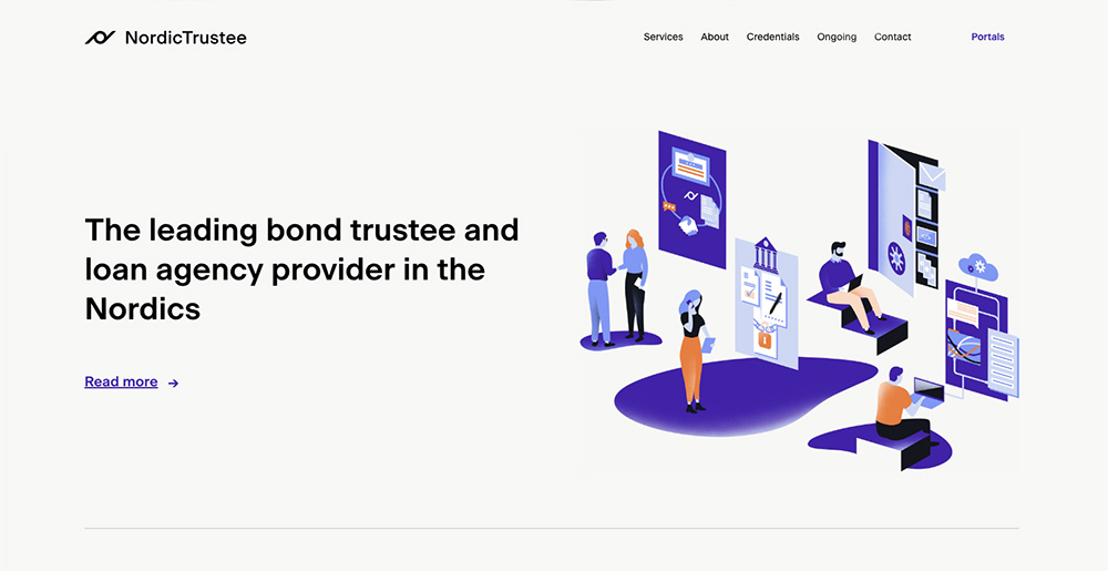 Illustrasjon til nettside som beskriver oppgavene til bedriften.