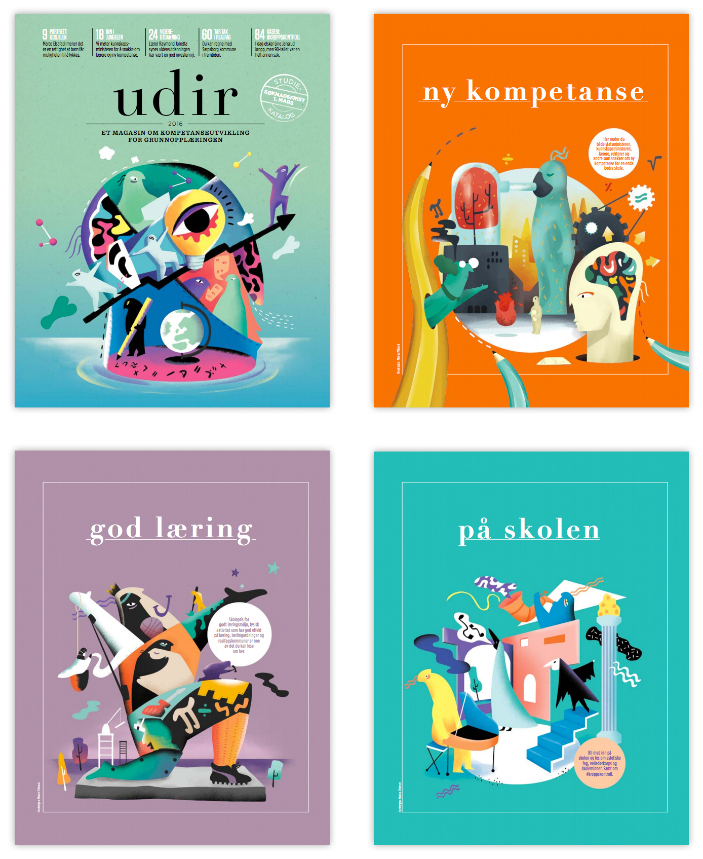 Illustrasjoner til omslag og kapittelåpnere i magasinet.